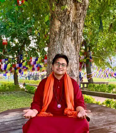 Swami Atmo Sangeet’s path to spirituality was further shaped when he was initiated by a self-realized Guru at age 9. His Guru's teachings ignited a deep curiosity about spirituality and the mysteries of the universe. During this time, Swami Ji experienced several life-changing miracles that intensified his thirst to uncover the mystical truths of existence, leading him to explore the inner dimensions through self-inquiry and meditation.