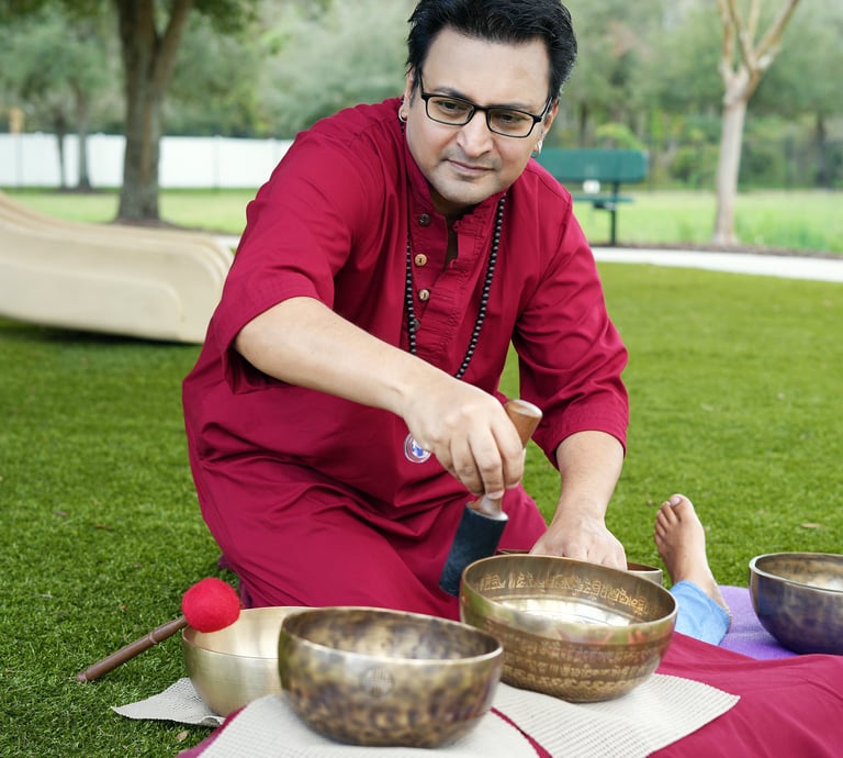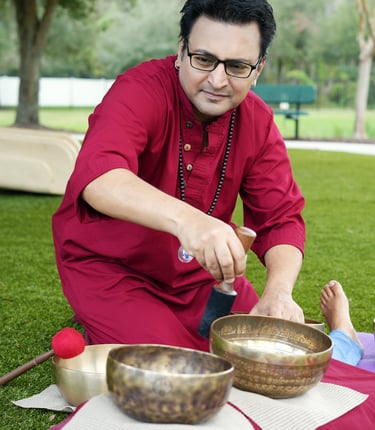 "A single sound healing session with Swami Atmo Sangeet can deeply alter your understanding of life. The transformative power of sound vibrations creates an unforgettable experience, leading to profound healing and a deeper sense of inner peace. Whether you're seeking emotional release, spiritual growth, or physical rejuvenation, each session is a journey that awakens new levels of clarity and self-awareness. You must experience this to believe it—truly a life-changing experience for all who participate"